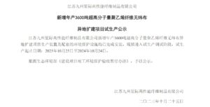江蘇九州星際高性能纖維制品有限公司 新增年產(chǎn)3600噸超高分子量聚乙烯纖維無緯布 異地擴建項目試生產(chǎn)公示