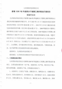 九州星際新增5280噸/年超高分子量聚乙烯纖維改擴(kuò)建項(xiàng)目試運(yùn)行公示